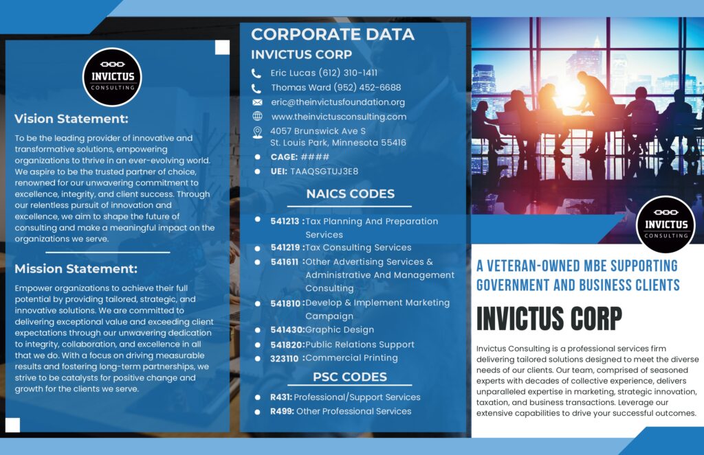 Contact us today to schedule a consultation with one of our experienced consultants. Together, we’ll chart a course for success and help you achieve your goals. Invictus Corporation: Delivering Excellence, Driving Success.